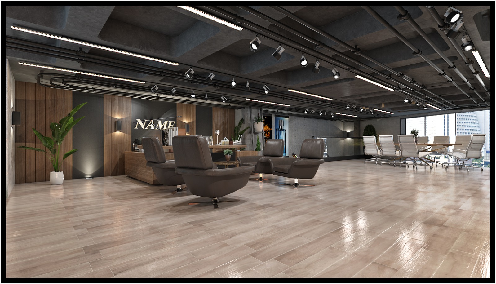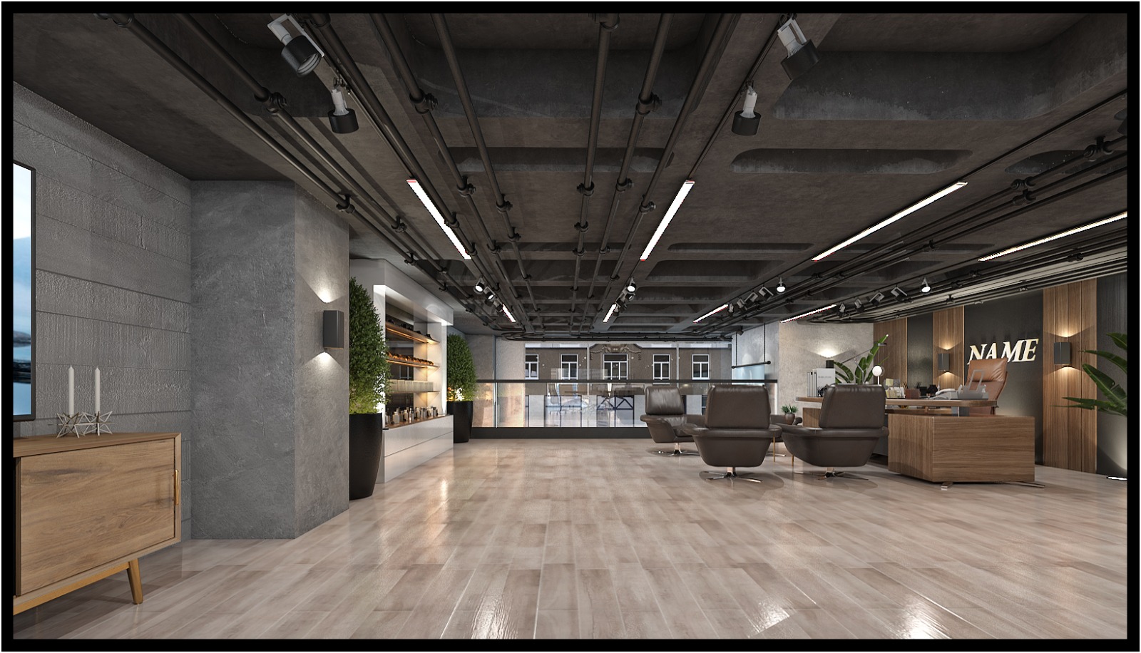 To soften the industrial atmosphere, artificial greenery was introduced in selected corners, adding balance, warmth, and a natural contrast to the raw materials used throughout the space.
