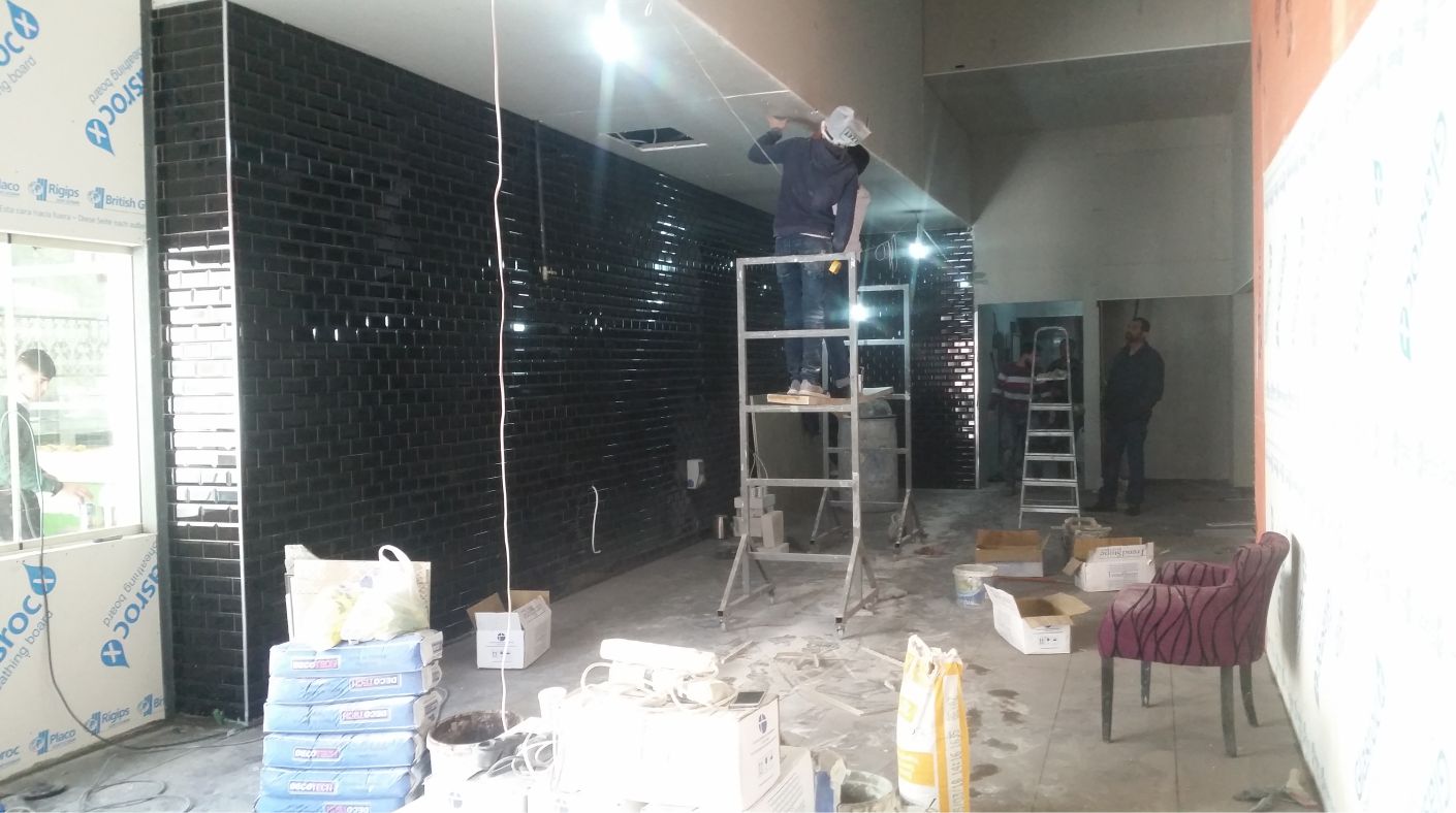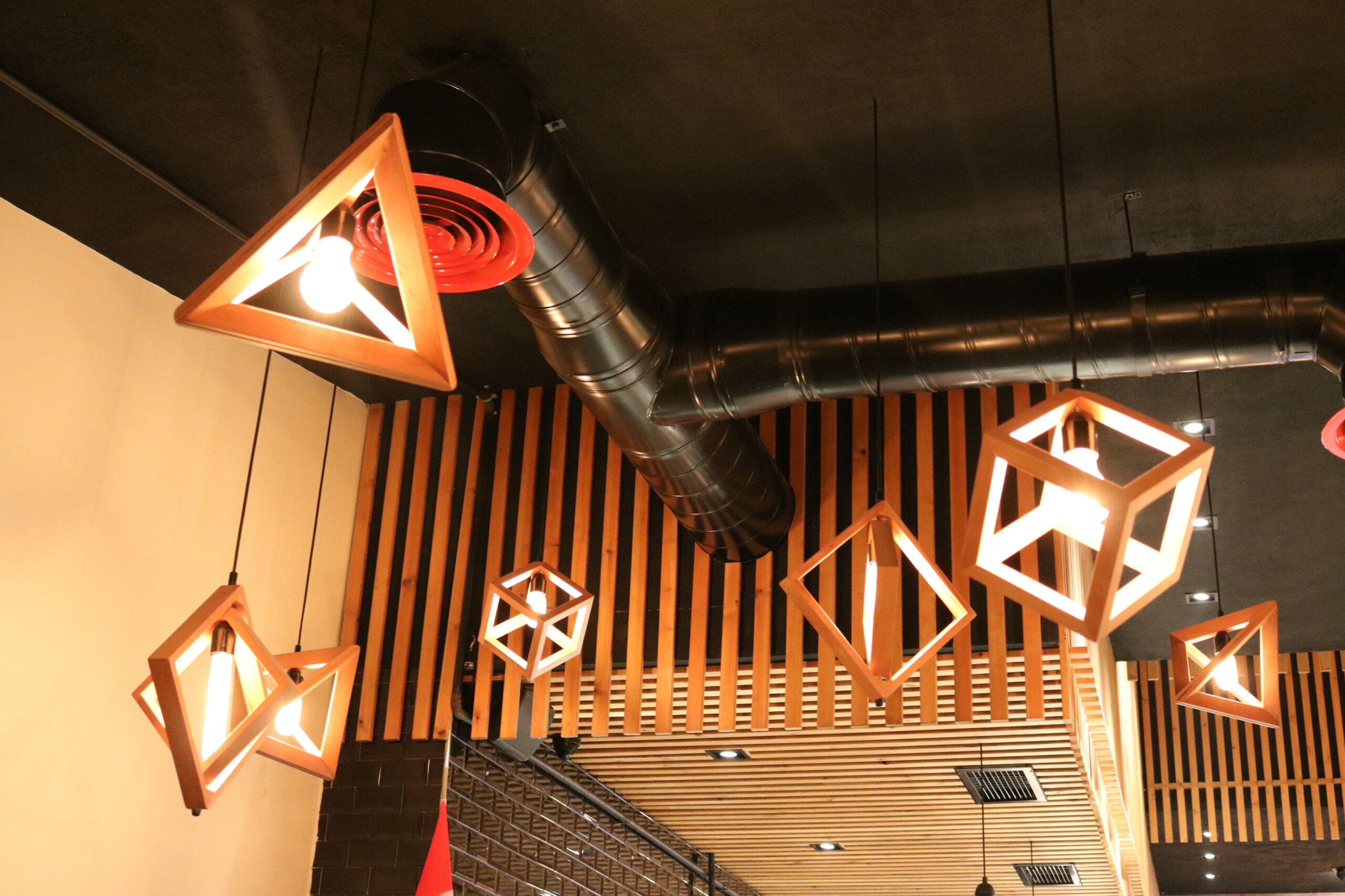The completed fit-out delivers a modern butcher shop and meat restaurant with a distinctive and inviting atmosphere. The combination of natural wood, brick stone walls, layered ceiling levels, and red electrical drop accents creates a visually striking and memorable space. This executed project reflects high-quality interior fit-out services, where precise execution, strong branding, and functional design come together seamlessly.