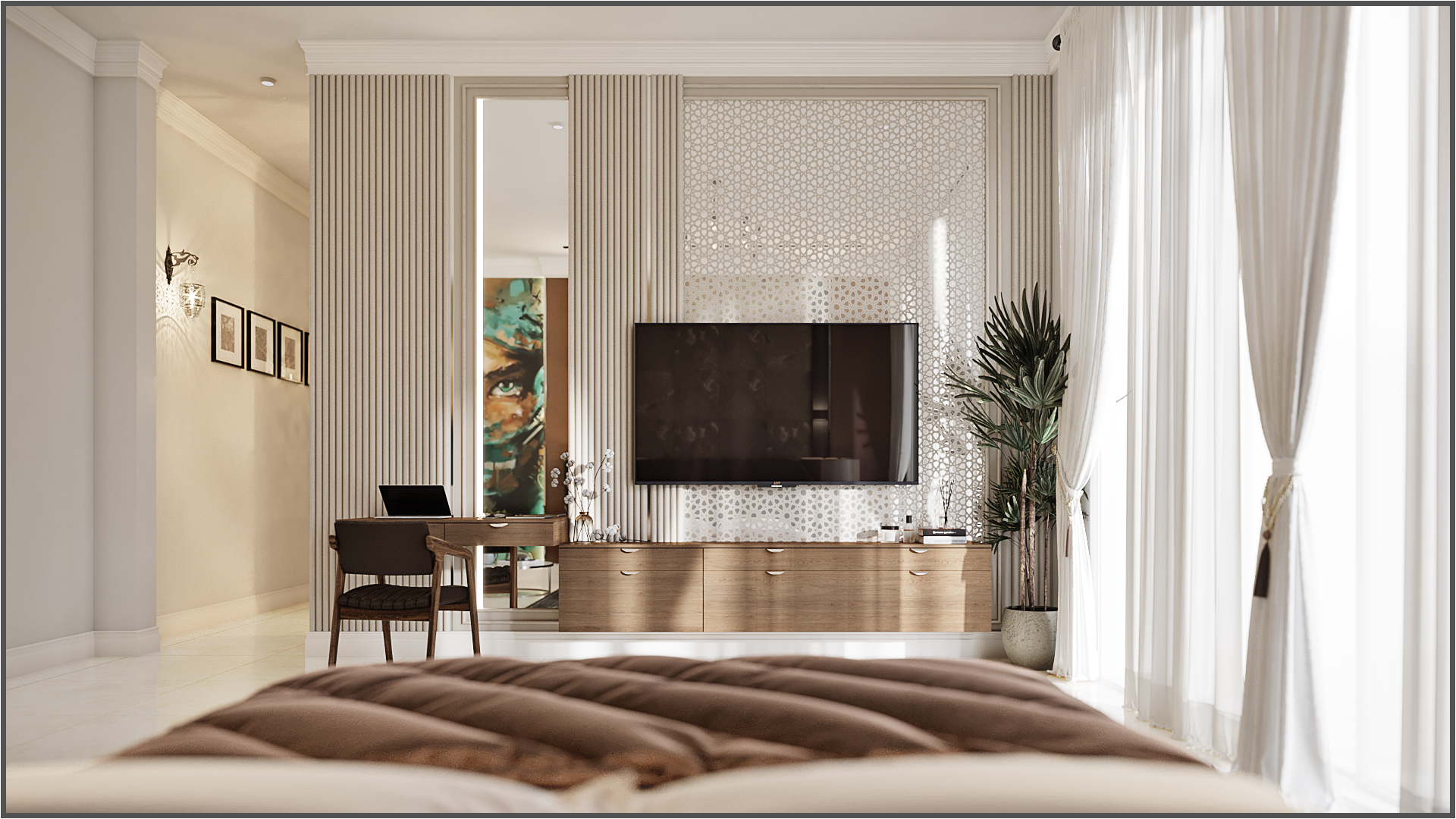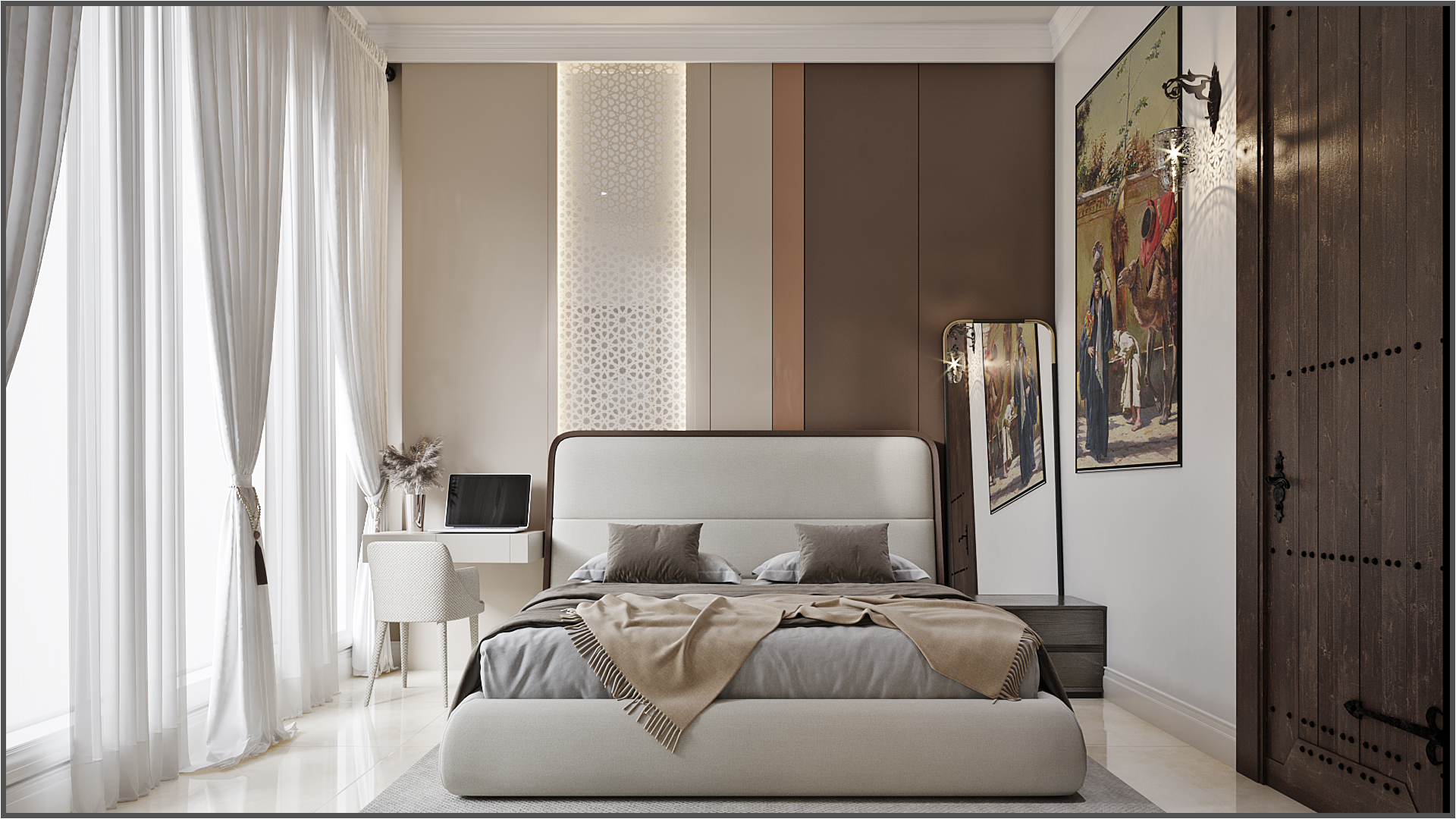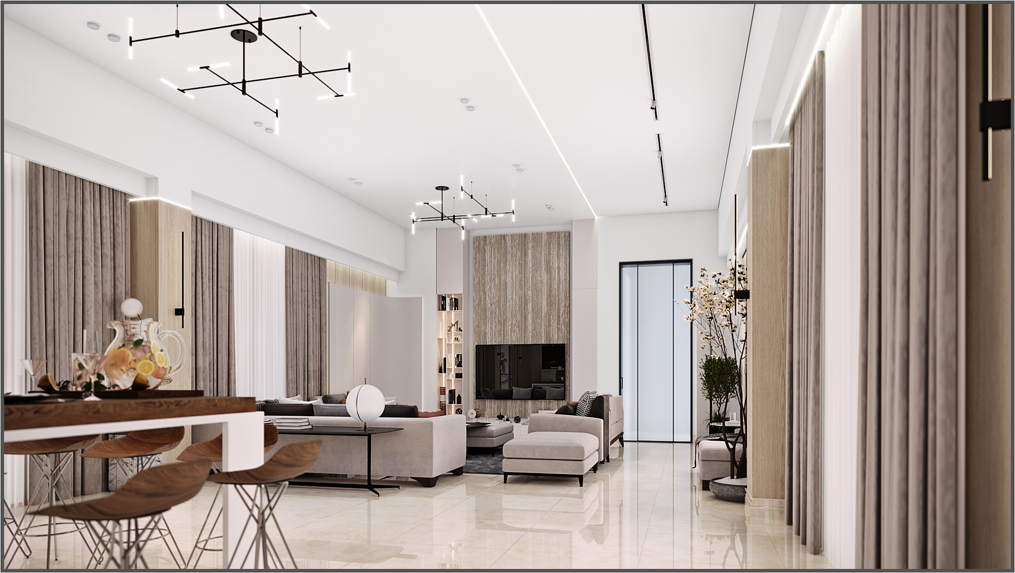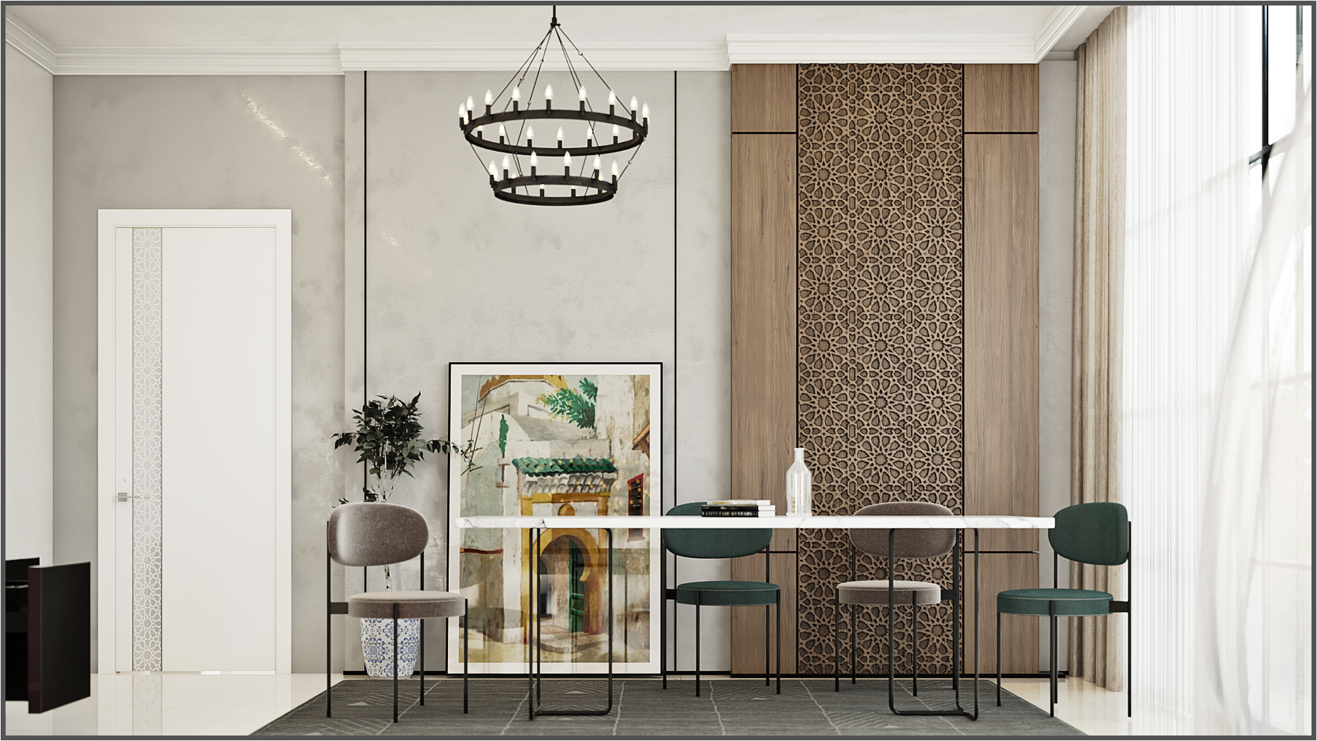 This modern villa interior design in Libya reflects a refined blend of contemporary architecture and authentic Libyan cultural identity. From the first impression, the design clearly highlights a balanced dialogue between modern living and traditional values. Therefore, the project delivers a distinctive residential experience that feels both elegant and culturally grounded.