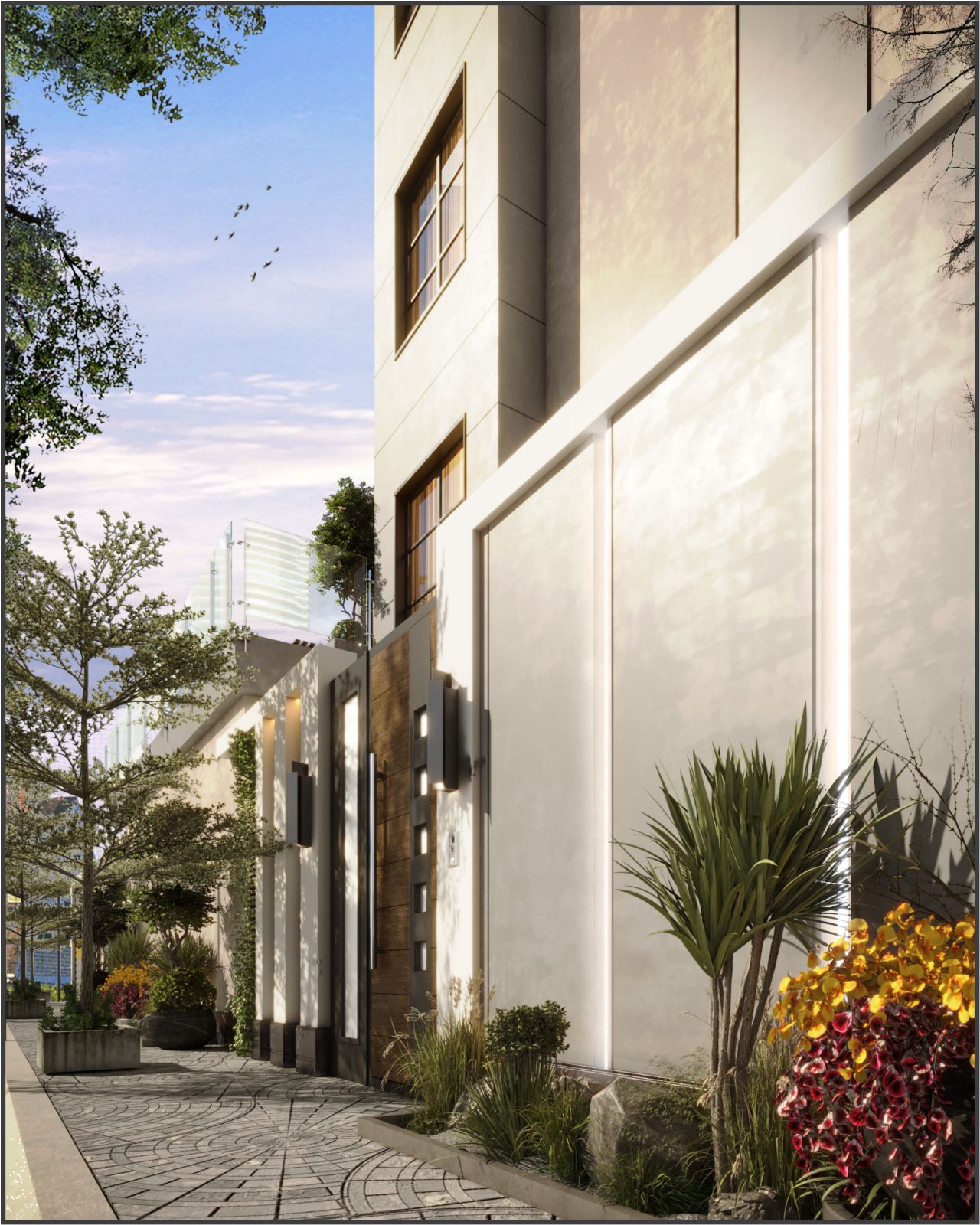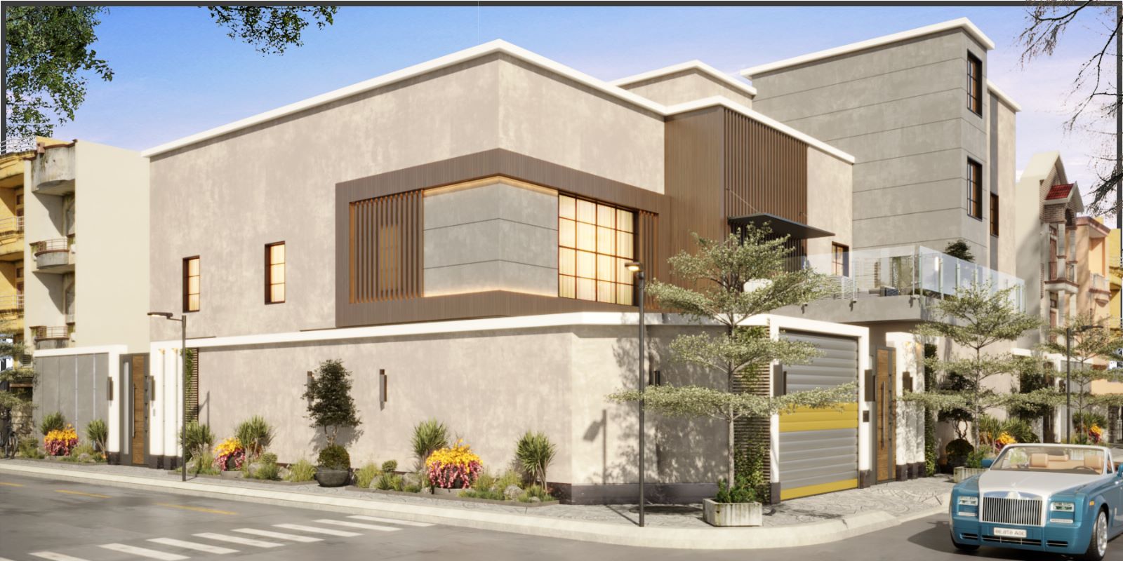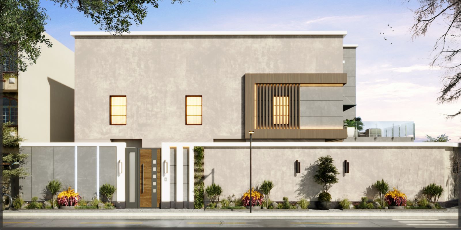 The final result is a modern villa facade with a strong architectural presence and a refined contemporary identity. The combination of materials delivers durability, elegance, and long-term visual appeal.