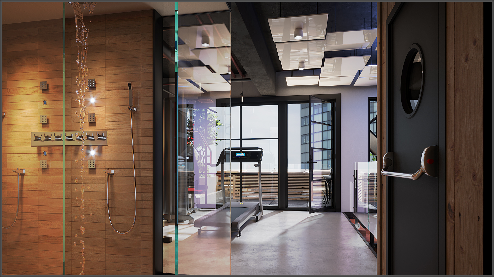On the second floor, the design accommodates the master bedroom alongside two children’s rooms. Each room balances functionality and style. The third floor transforms into a private wellness retreat, featuring a gym, sauna, terrace, and barbecue area. Finally, the basement provides a quiet and private home office.