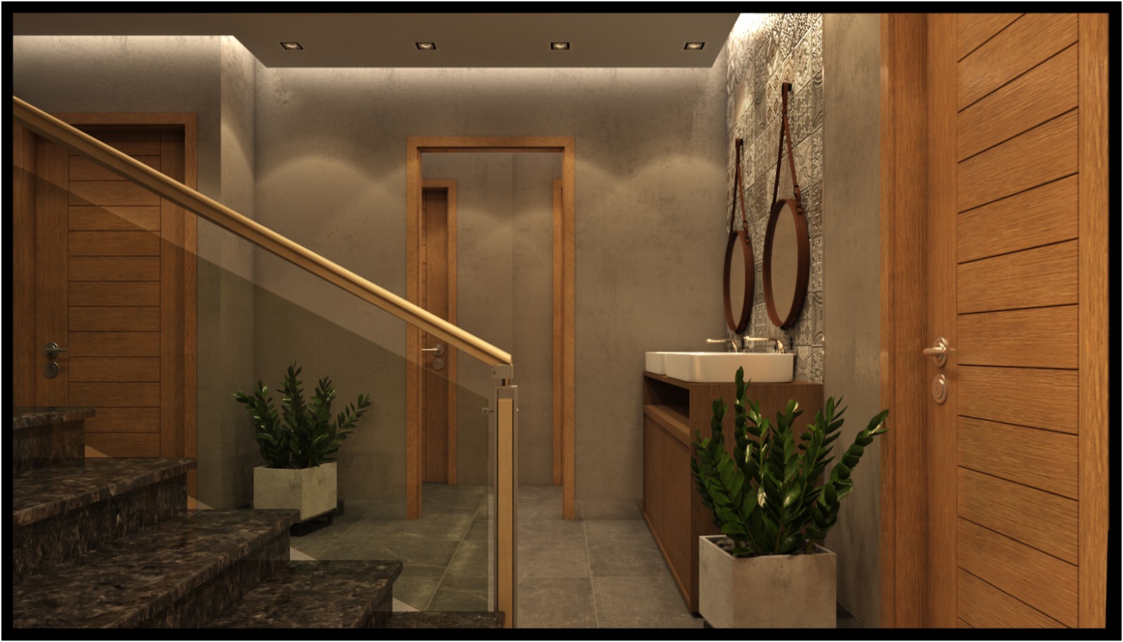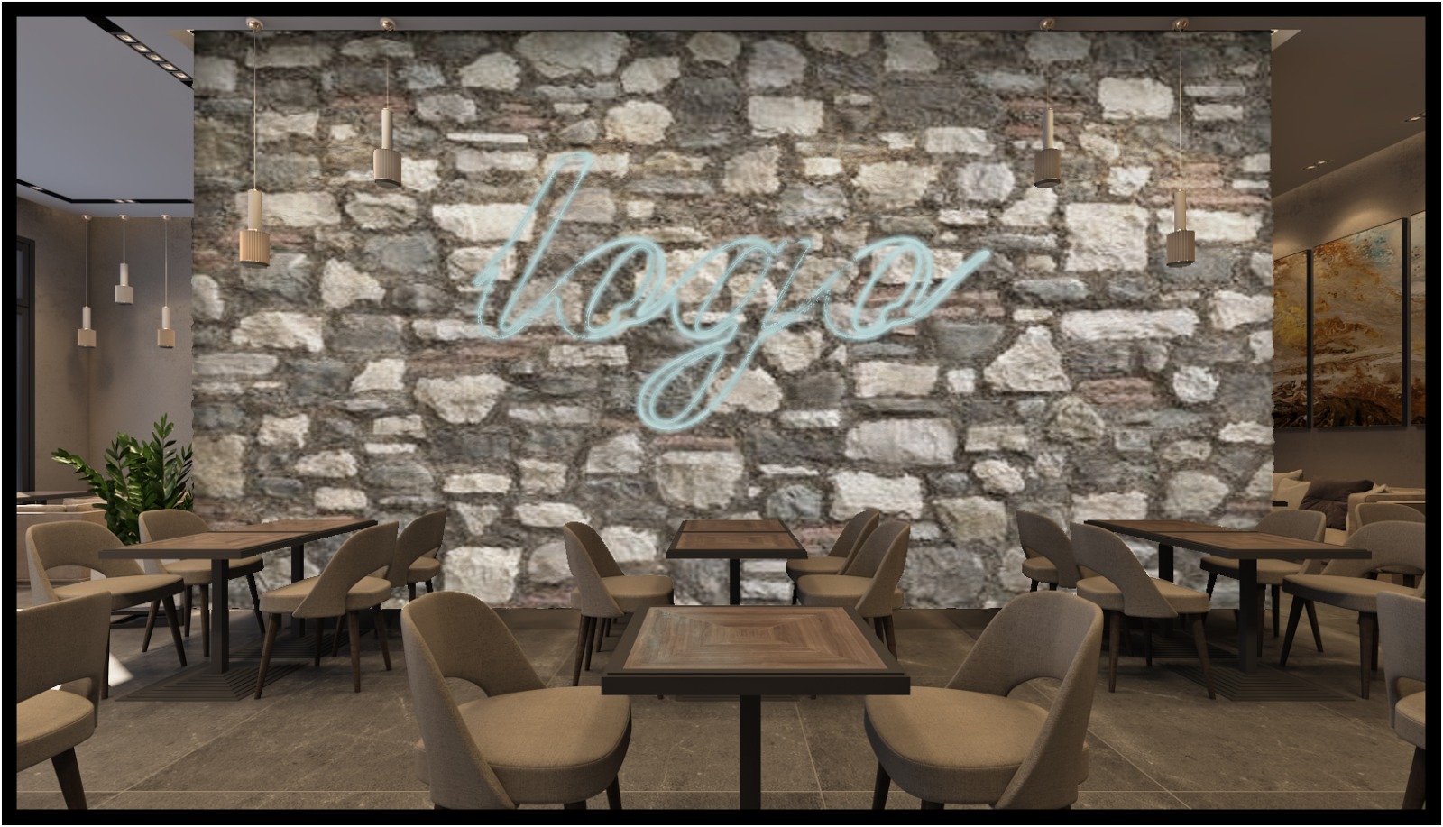 Natural brick stone walls were used to add warmth and character, complemented by decorative finishes in neutral tones to enhance brightness and spatial flow.