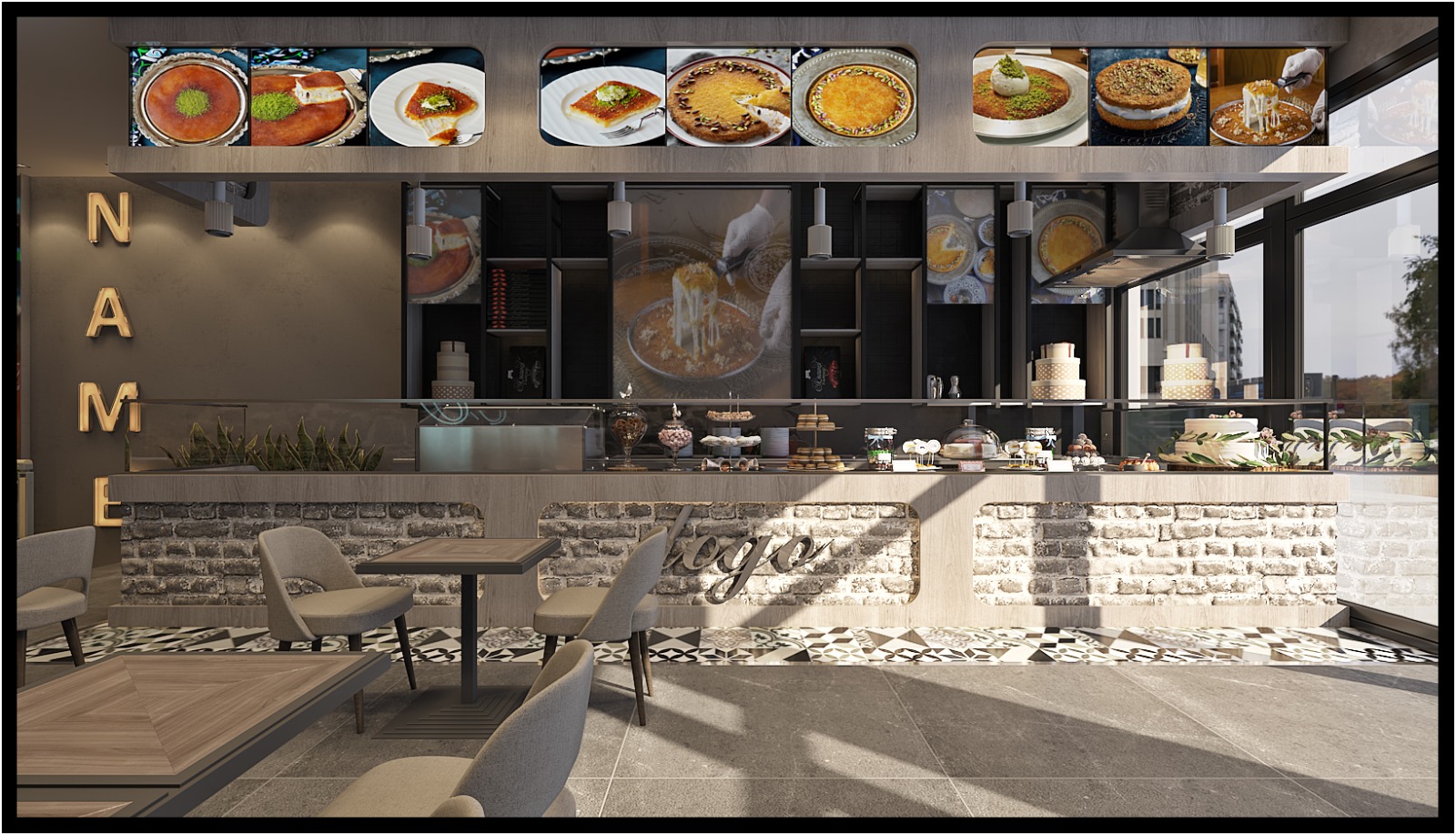 This project presents a modern pastry shop design in Başakşehir, Istanbul, where aesthetics and functionality come together to create an inviting and memorable customer experience. The design focuses on highlighting the brand identity while ensuring a smooth and practical spatial layout.