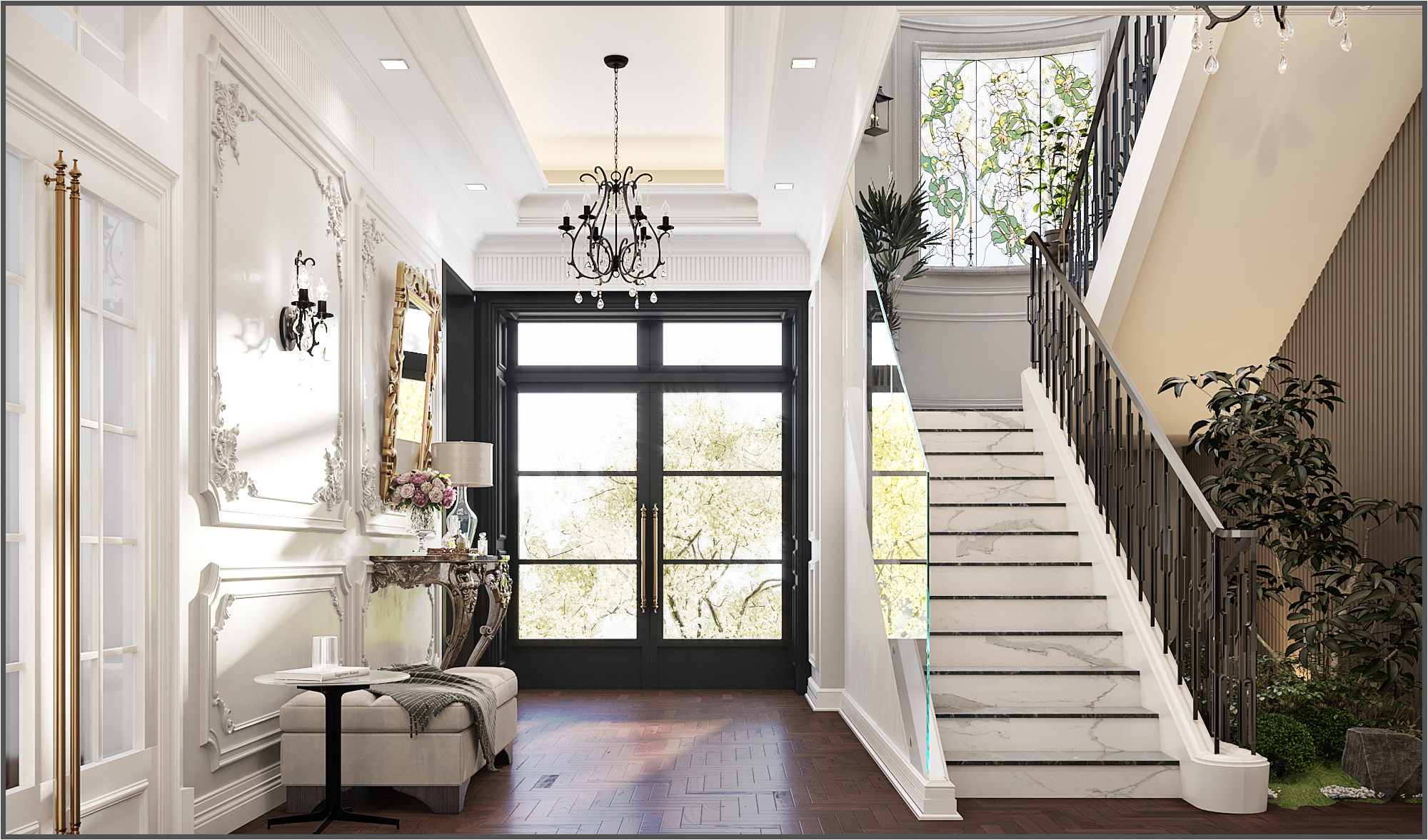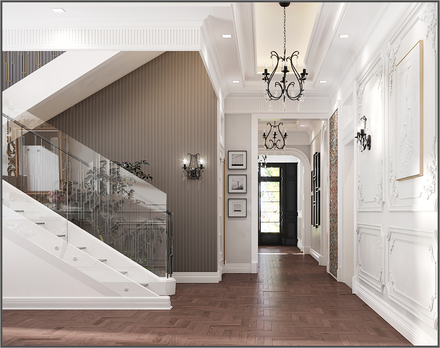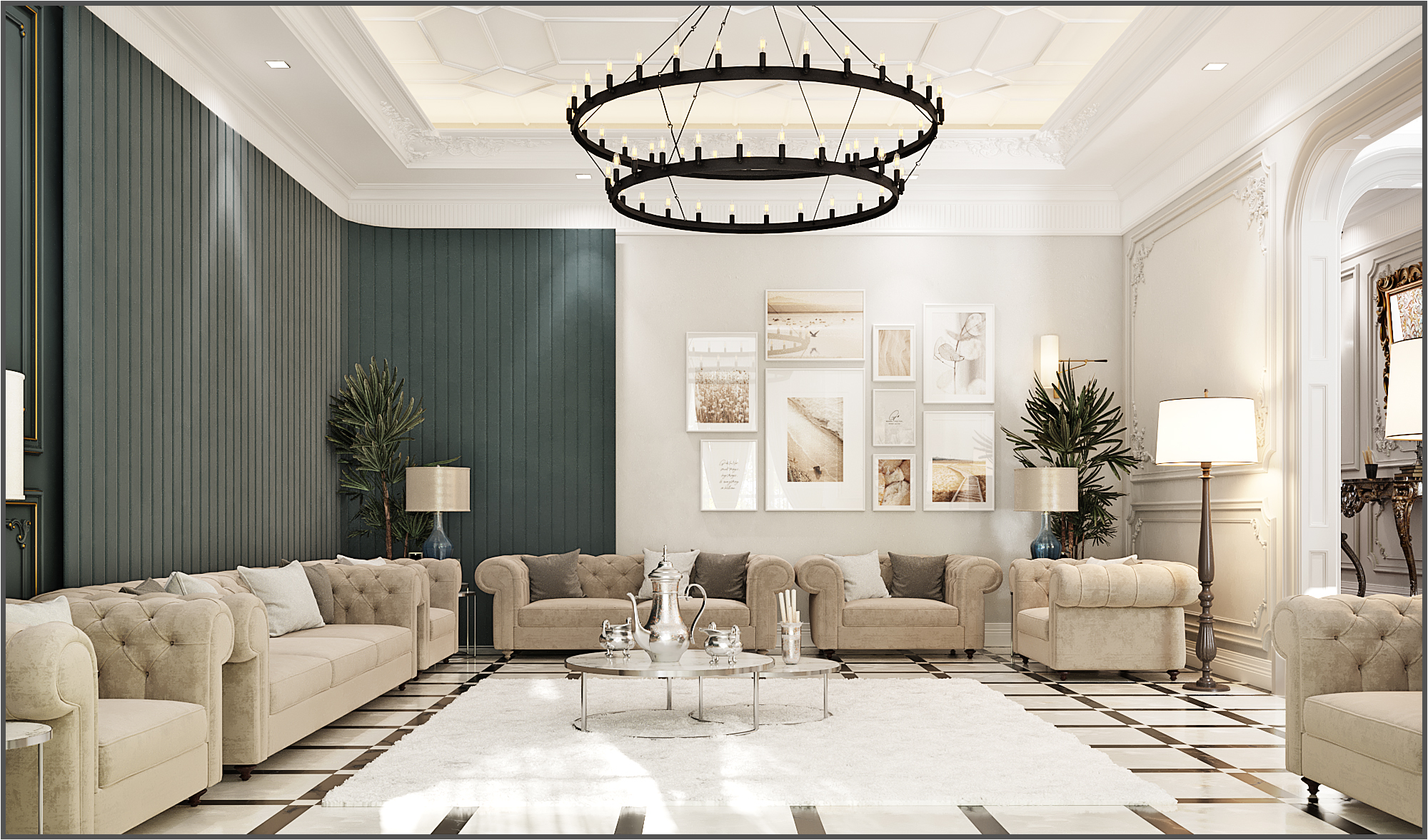 This royal classic villa entrance and majlis design is inspired by French classical elegance, focusing on luxury, refined detailing, and balanced ornamentation. With a total area of 150 sqm, the entrance and majlis were designed to create a strong first impression and reflect a sophisticated lifestyle.